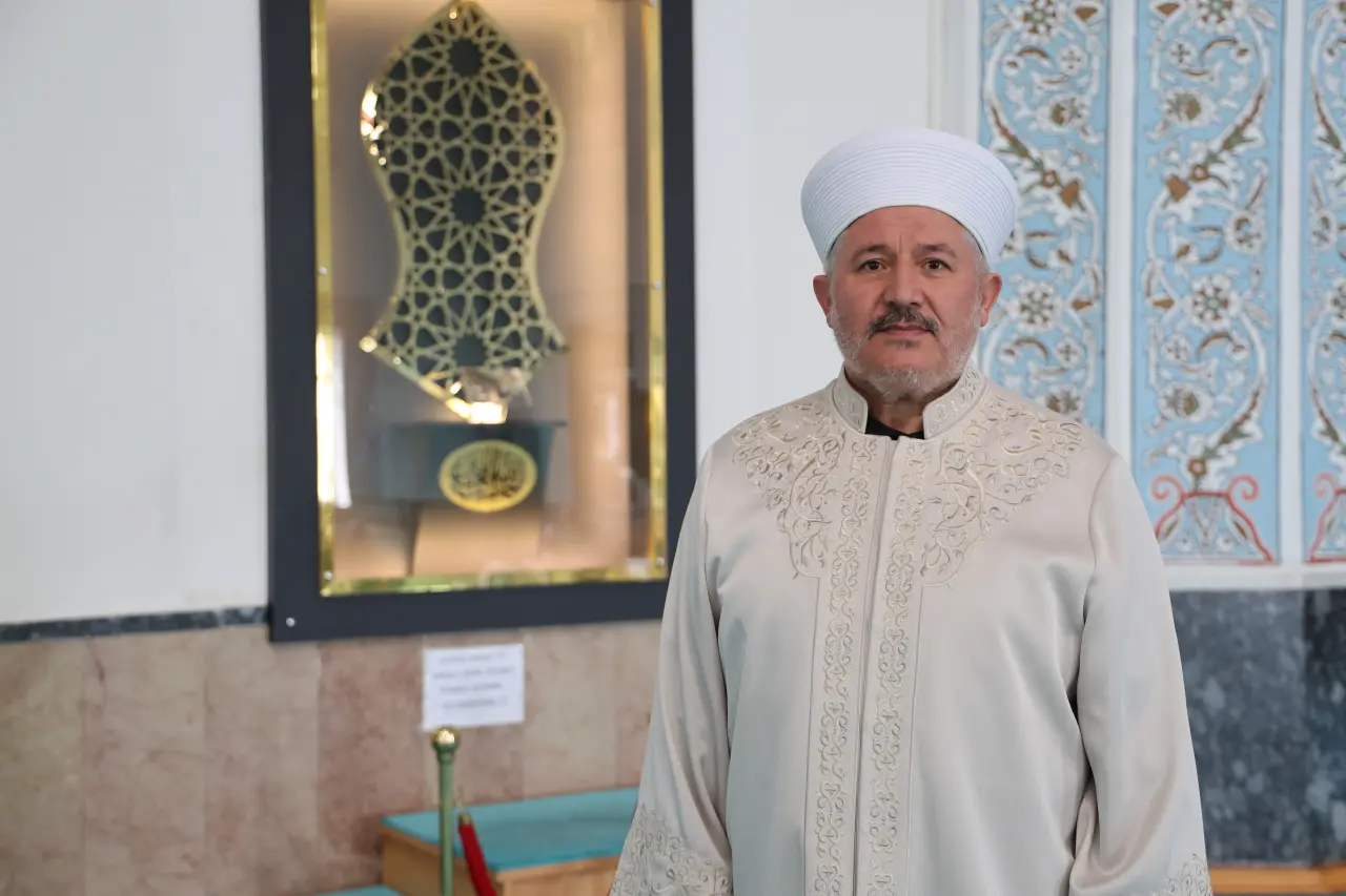 “Camimiz 1980 yılında restore edildi. Camimizin yaklaşık 605-606 yıllık bir geçmişi var. Bir memlekette yapılan en eski cami, en feyizli camidir. Camimizde yılların birikimi ile manevi bir atmosferi var. Konumu ve farklı nedenlerden dolayı sevilen bir camidir. Sabah namazı ve yatsı namazı arasında Peygamber Efendimizin Sakal-ı Şerifi ziyarete açıktır. Burayı ziyarete şehir dışından bile gelenler oluyor. Kutsal ve manevi değerlerine çok önem veren bir milletiz. Peygamber Efendimizin Sakal-ı Şerif’i şehrimizdeki farklı camilerde de bulunuyor. Bizim camide sürekli açık olması insanların buraya gelmesine vesile oluyor. Süheyl bin Amr sonradan Müslüman oldu. Müslüman olduktan sonra Peygamber Efendimizi sürekli takip ederdi. Peygamber Efendimiz tıraş olduktan sonra onları toplar ve biriktirirdi. İşte bu hediye Süheyl bin Amr’ın hediyesi olarak dağılmış oldu. Allah’ın bir hediyesidir” dedi.