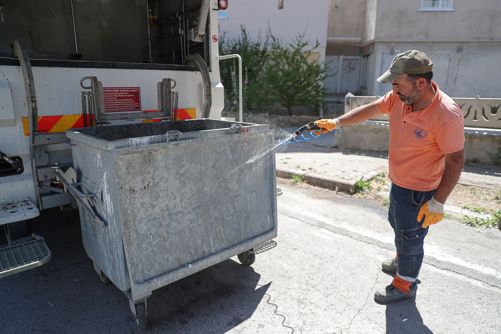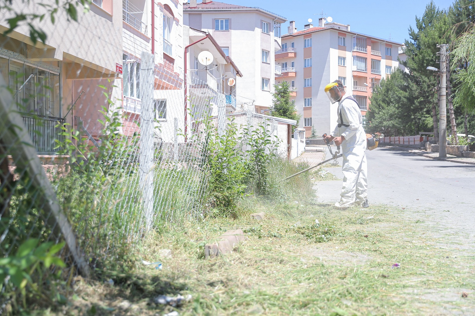 Temizlik seferberliği, mahalle sakinlerini rahatsız eden ve kötü bir görüntü oluşturan detayları da kapsadı. Kaldırımlarda ve boş arazilerde kontrolsüzce uzayan yabani otlar, ekipler tarafından titizlikle biçilerek temizlendi. Mahalle genelindeki tüm çöp konteynerleri de tek tek ele alındı. Önce yıkanan konteynerler, ardından özel solüsyonlarla dezenfekte edilerek hem kötü kokuların önüne geçildi hem de ortak kullanım alanlarının hijyen seviyesi en üst düzeye çıkarıldı.