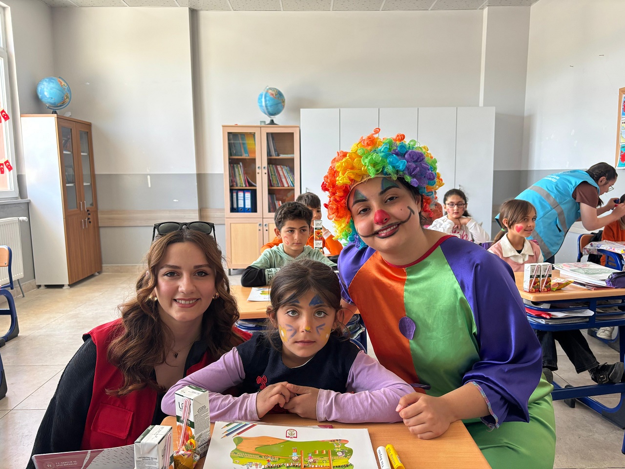 Etkinlikte, palyaço kıyafeti giyen yurt personeli miniklerin ilgi odağı oldu ve onlara keyifli anlar yaşattı. Çocukların yüzleri, yetenekli üniversite öğrencileri tarafından yapılan rengarenk boyamalarla süslenirken, okul bahçesi çalınan müzikler ve edilen danslarla adeta bir şenlik alanına dönüştü. Miniklerin kahkahaları ve cıvıl cıvıl coşkusu, tüm katılımcılara unutulmaz ve duygu dolu anlar yaşattı.