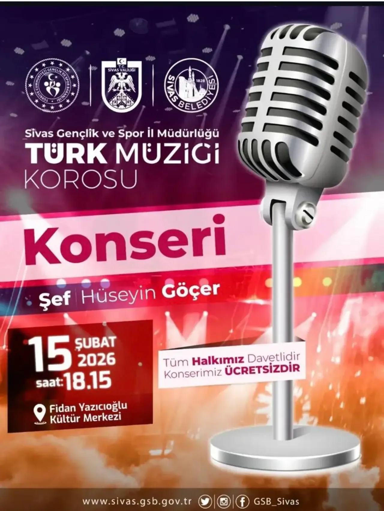 Etkinliğin adresi, Sivas’ın en önemli kültür duraklarından biri olan Fidan Yazıcıoğlu Kültür Merkezi olarak belirlendi. 15 Şubat 2026 Pazar günü saat 18.15’te başlayacak olan konser için salonun hınca hınç dolması bekleniyor. Şehrin kalbinde yükselecek olan Türk müziği tınıları, kış akşamını ısıtmaya yetecek.