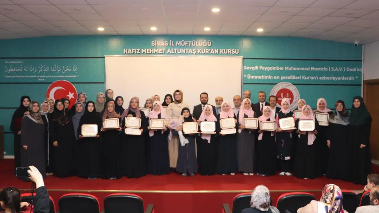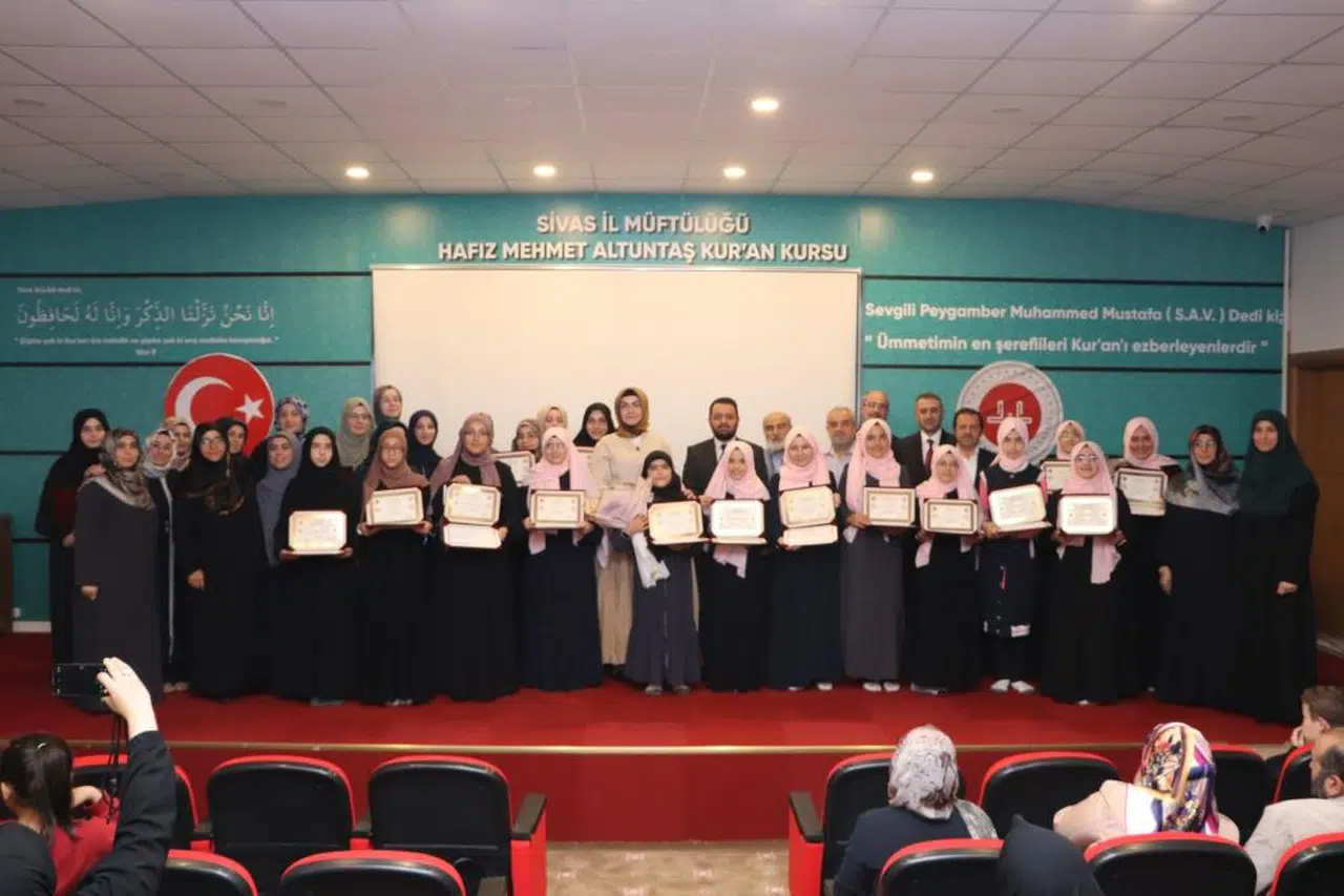 Diyanet İşleri Başkanlığı tarafından yapılan Hafızlık Tespit Sınavında başarılı olan 24’ü erkek, 22’si kız olmak üzere toplam 46 öğrenci için Sivas Hafız Mehmet Altuntaş Erkek Yatılı Hafızlık Kur’an Kursu Konferans Salonunda hafızlık belge takdim töreni gerçekleştirildi.