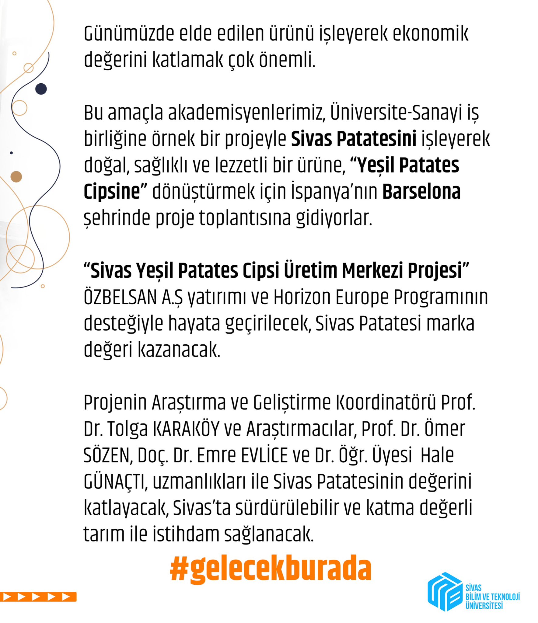Projenin akademik koordinasyonunda ise Sivas Bilim ve Teknoloji Üniversitesi Tarım Bilimleri ve Teknoloji Fakültesi önemli bir rol üstleniyor. Fakülte öğretim üyelerinden Prof. Dr. Tolga Karaköy, Prof. Dr. Ömer Sözen, Doç. Dr. Emre Evlice ve Dr. Öğr. Üyesi Hale Günaçtı, projede araştırmacı olarak görev alacak. Proje ekibi, 14-21 Nisan tarihleri arasında Barselona’da gerçekleştirilecek ön hazırlık toplantısında yer alacak.