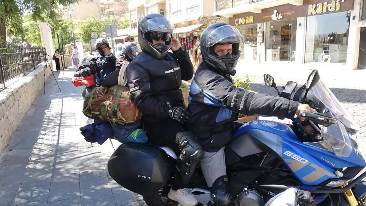 Sakarya'dan motosikletle yola çıkan iki arkadaş, eşleriyle birlikte Doğu ve Güneydoğu illerini kapsayan turlarında Mardin'e geldi.