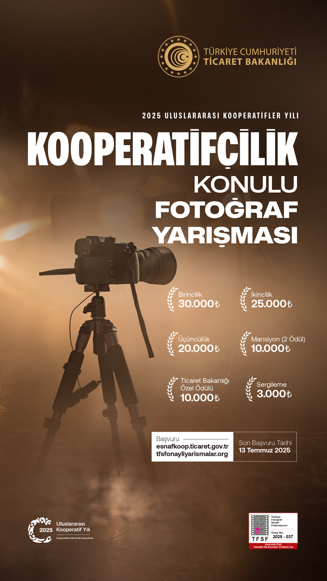 2025 Uluslararası Kooperatifler Yılı Kooperatifçilik Konulu Fotoğraf Yarışması: Türkiye'de yerleşik, 18 yaş ve üstü tüm amatör ve profesyonel fotoğraf tutkunlarının, kooperatifçiliğin ruhunu kendi kadrajlarından yansıtabileceği bir fırsat sunuyor.