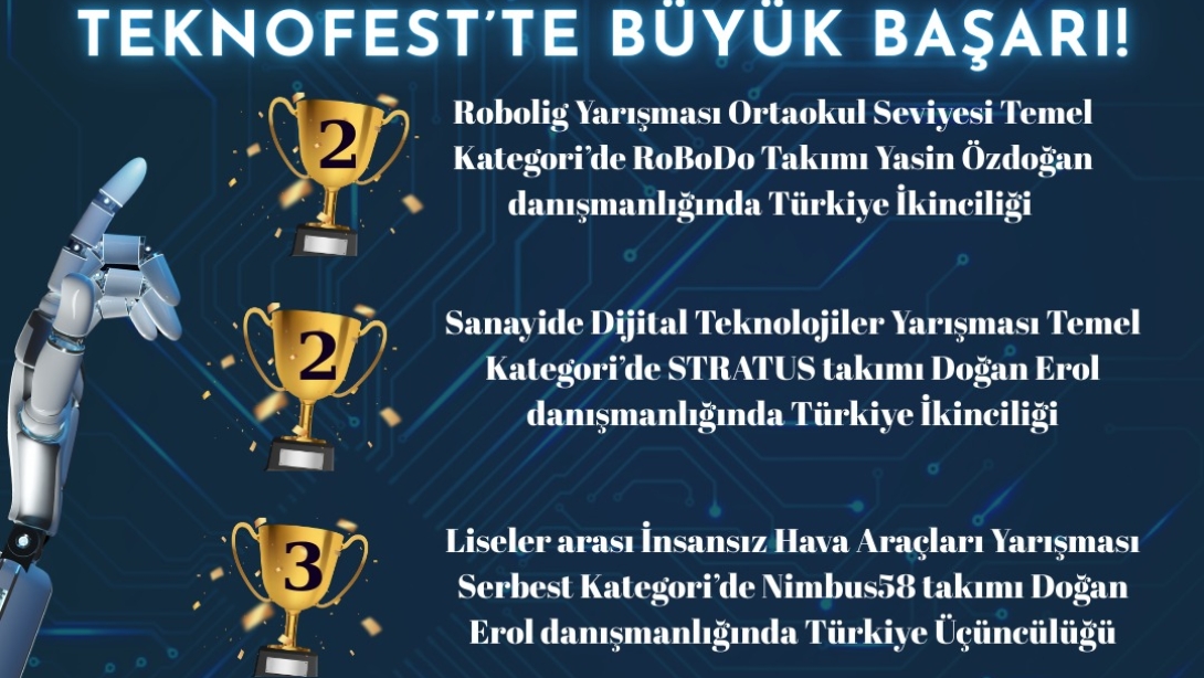 Sivas Millî Eğitim Müdürlüğü koordinesinde, TEKNOFEST 2025 finallerinde 3 takımımız Türkiye genelinde ilk 10'a girerek büyük bir başarıya imza attı.