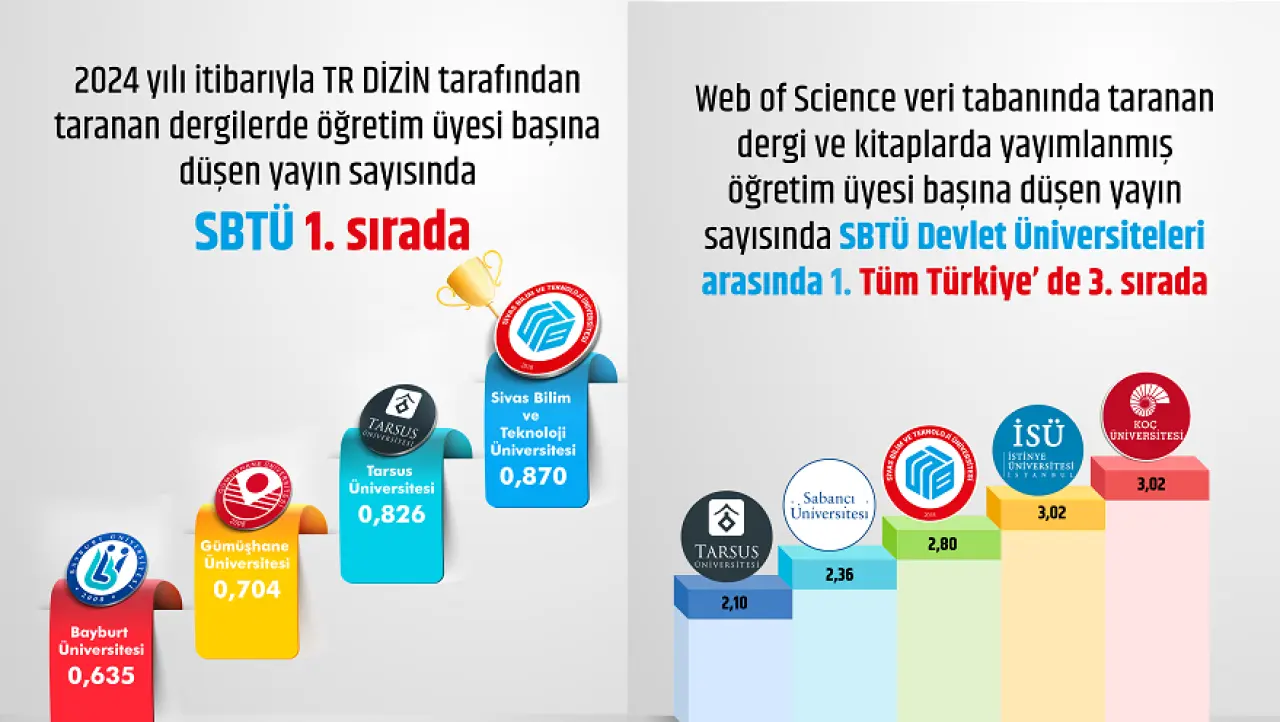 YÖK raporunda dikkat çeken bir diğer başlık ise TR Dizin verileri oldu. Türkiye’de taranan TR Dizin dergilerinde yapılan değerlendirmede Sivas Bilim ve Teknoloji Üniversitesi, akademisyen başına düşen yayın sayısında Türkiye birincisi oldu. Bu sonuç, üniversitenin yalnızca yayın sayısına değil, nitelikli ve sürdürülebilir bilimsel üretime odaklandığını da ortaya koydu.