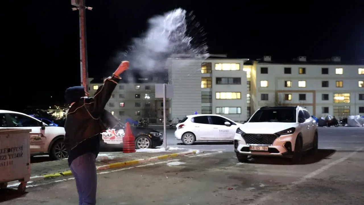 Sibirya soğuklarının etkili olduğu Sivas’ta, soğuk hava etkisini artırarak devam ediyor. Geçtiğimiz günlerde yağan kar, yerini soğuk havaya bıraktı. Hava sıcaklığı gece saatlerinde sıfırın altında 15 dereceye kadar düşmesi hayatı olumsuz etkiledi. Havaya fırlatılan sıcak su, soğuk havanın etkisiyle yere düşmeden buhara dönüşürken, ilginç görüntüler ortaya çıktı. Vatandaşlar soğuktan korunmak için atkı, bere ve eldivenlerini takarak önlemler aldı.