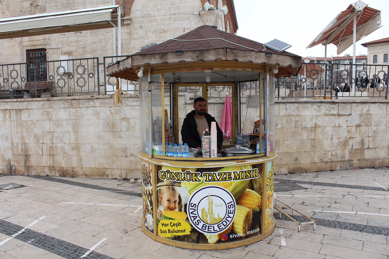 Sivas Çifte Minare çevresinde, kışın en yoğun saatlerinde bile mısır satan büfelere ilgi oldukça fazla. Sıcacık mısır alarak soğuktan korunmak isteyenler, karşılarda bir araya gelip sohbet ederken, bu geleneksel sokak yemeği, kışın vazgeçilmezi haline gelmiş.
