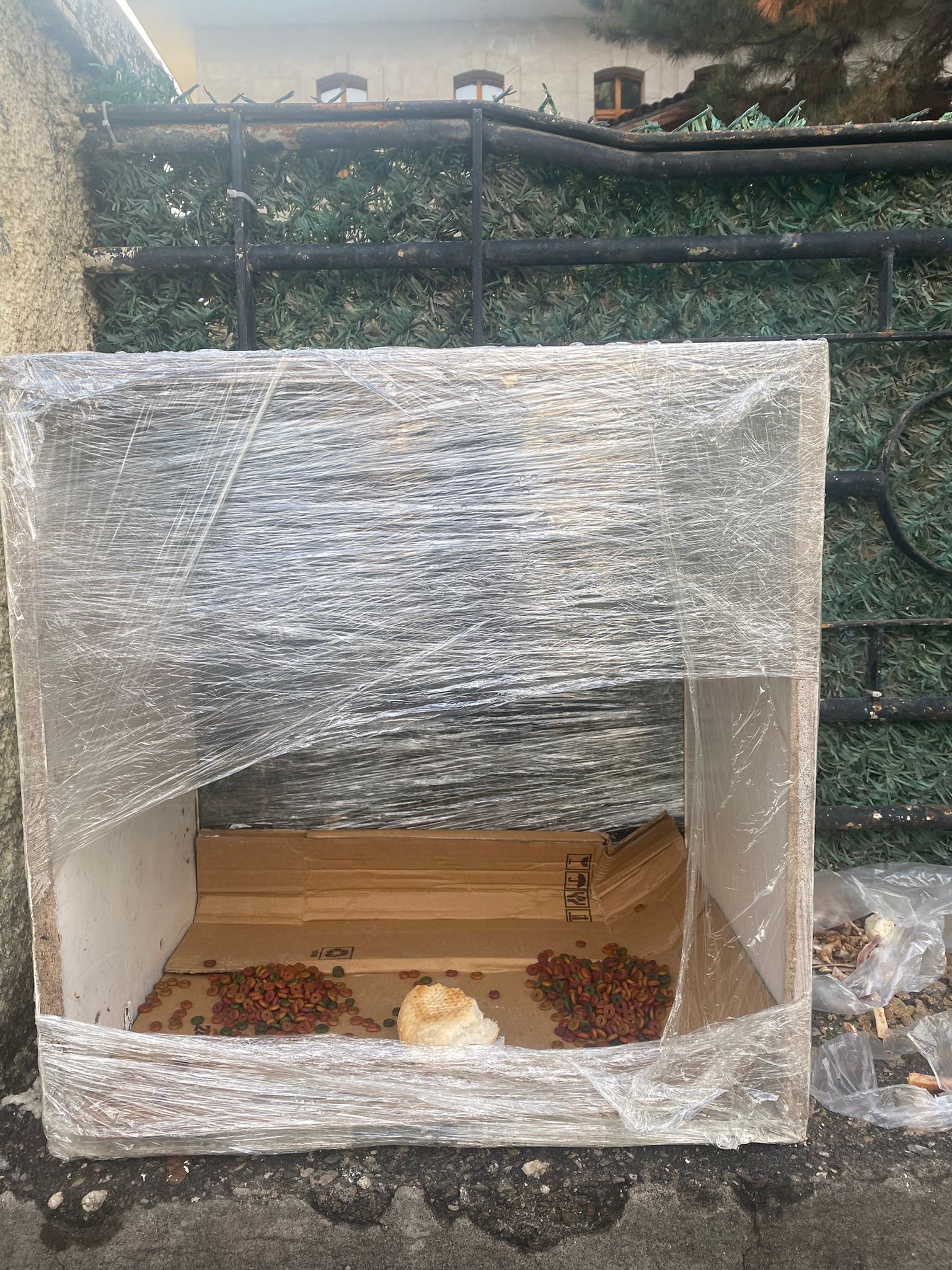 Sivas Gençlik ve Spor Bakanlığı Gençlik Merkezi bahçe duvarında, sokak hayvanlarına yönelik anlamlı bir uygulama dikkat çekti. Gençlik Merkezi'nin duvarına, kediler için hem barınak hem de beslenme alanı olarak kullanılabilecek bir kutu yerleştirilmiş. Streç filmle sarılan kutu, çocuklar tarafından tasarlanmış olabileceği tahmin edilen pratik bir çözüm sunuyor.