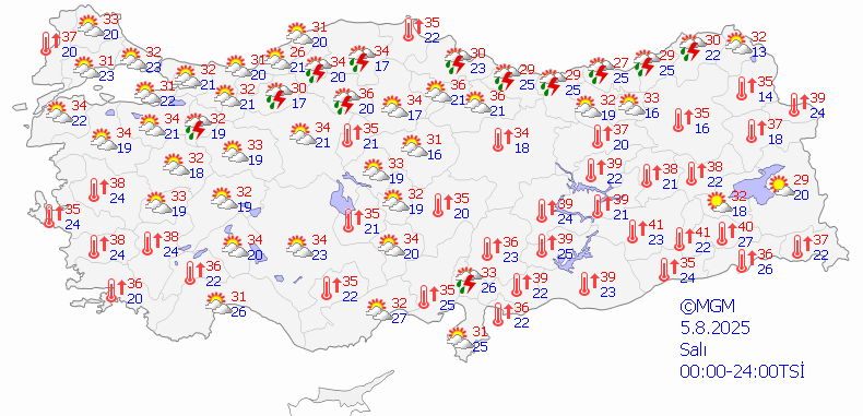 5 Ağustos Salı: Parçalı Bulutlu, 31°C / 16°C