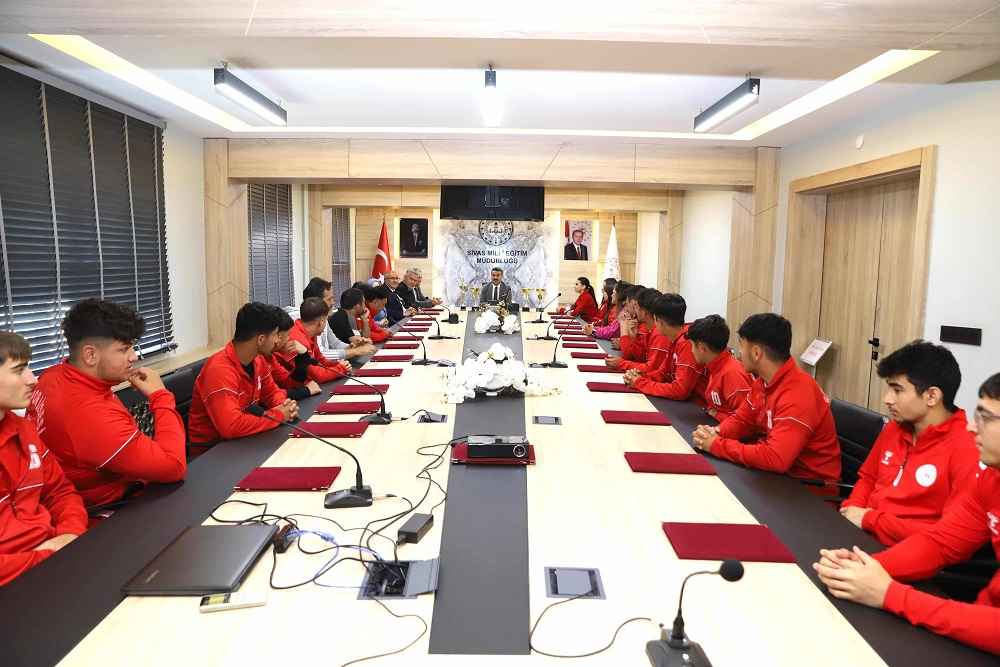 Sivas Millî Eğitim Müdürü Fatih Erdoğan, 2024-2025 Eğitim-Öğretim Yılı Okul Sporları Türkiye Şampiyonalarında çeşitli branşlarda 1, 2, 3 ve 4'üncülük derecelerini elde eden Ahmet Ayık Spor Lisesi ve Mustafa Taki İHO öğrencilerini tebrik etti. Okul idarecileri ve öğretmenleri ile birlikte Erdoğan'ı ziyaret eden öğrenciler, katıldıkları şampiyonalar ve elde ettikleri dereceler hakkında bilgi verdi.