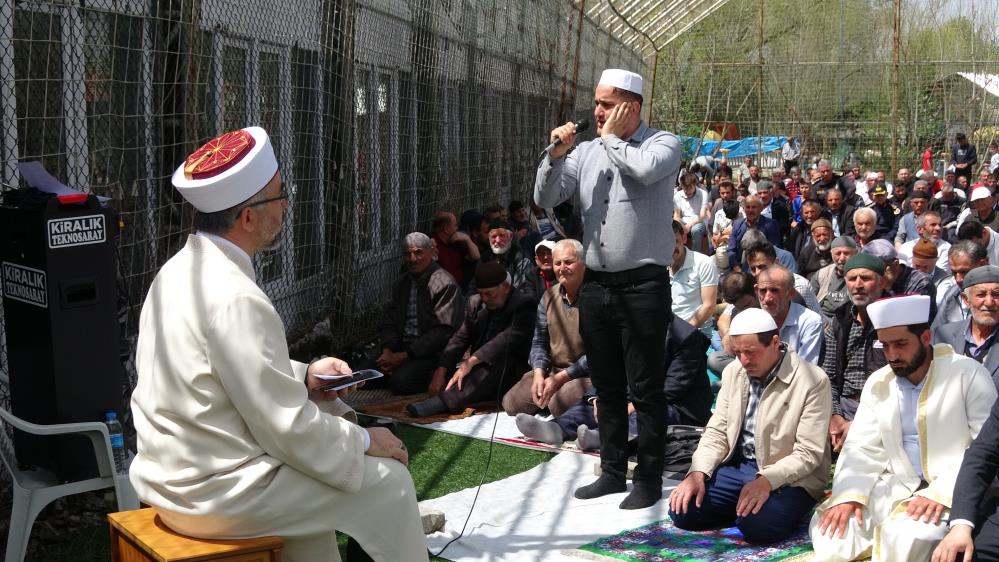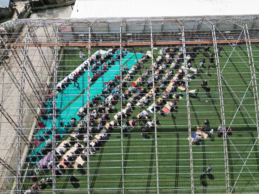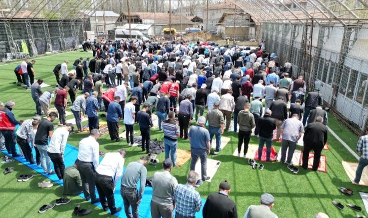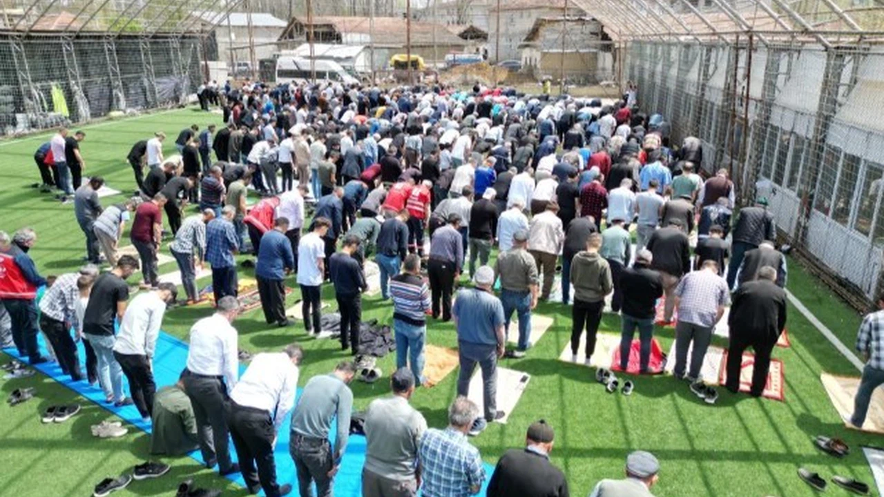 Okul bahçelerinin yanı sıra ilçede bulunan halı sahada da namaz kılındı. Geceyi aileleriyle birlikte dışarıda geçiren ilçe sakinleri, halı sahada yan yana saf tuttu. Cuma namazını halı saha içerisinde kılan vatandaşlar, can kaybının olmamasının sevindirici olduğunu söyledi. Halı sahada kılınan cuma namazı dron ile havadan görüntülendi.