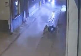 Kaza anı bir iş yerinin güvenlik kamerasına saniye saniye yansıdı. Güvenlik kamera görüntülerinde; aracın, başka bir aracı hızla sollayıp kaldırımda yürüyen trafik polisine çarpıp 20 metre sürüklediği görüldü.
