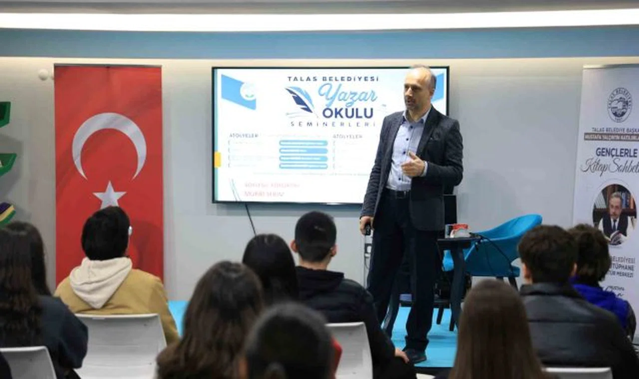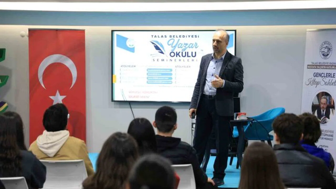 Talas Belediyesi'nin kültür, sanat ve edebiyata gönül verenlerle yazarları buluşturduğu Yazar Okulu Seminerleri programında yedi haftalık bölüm tamamlandı. Ocak ayı sonuna kadar devam edecek programların yedincisinde eğitimci yazar Murat Serim, gençlere söyleşi ve röportaj ile ilgili birikimlerini anlattı.