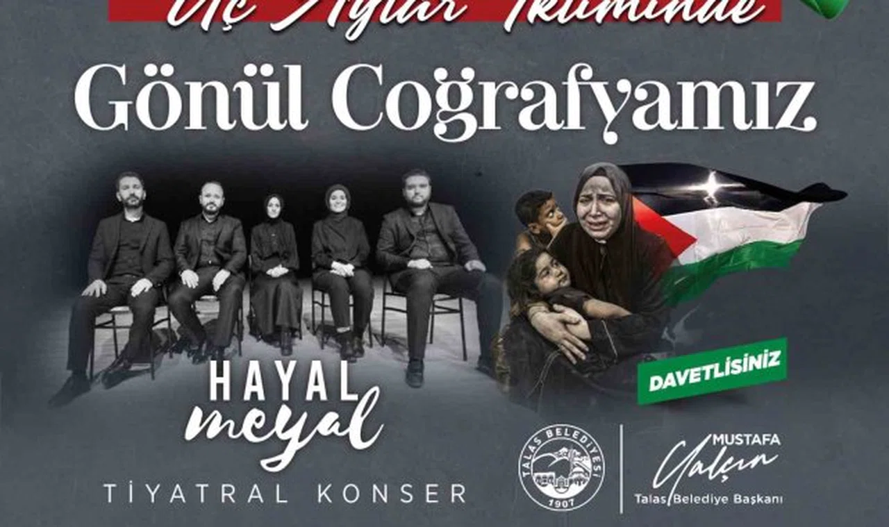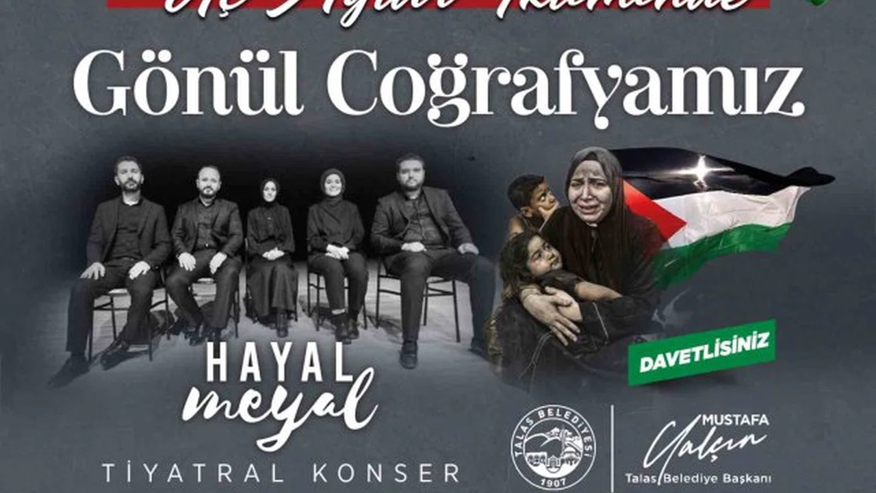 Cihannüma Derneği Kayseri Şubesi ve Kayseri Filistin'le Dayanışma Platformu işbirliğiyle düzenlenecek program Kur'an-ı Kerim tilaveti ile başlayacak. Protokol konuşmaları ile devam edecek programda Hayal Meyal grubu tiyatral gösteriyle Gazze'den Bosna'ya, Doğu Türkistan'dan Myanmar'a mazlumların dünyasına yolculuk yaptıracak.