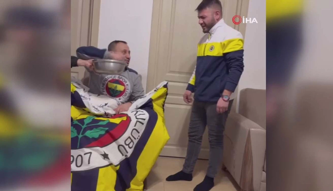 Akif Burhan, büyük bir Fenerbahçe bayrağı açıp, tek tek futbolcuların ismini sayarak nazara karşı kurşun döktürdü. Burhan, Fenerbahçe maçı kazanırsa döner ısmarlayacağının da sözünü verdi.