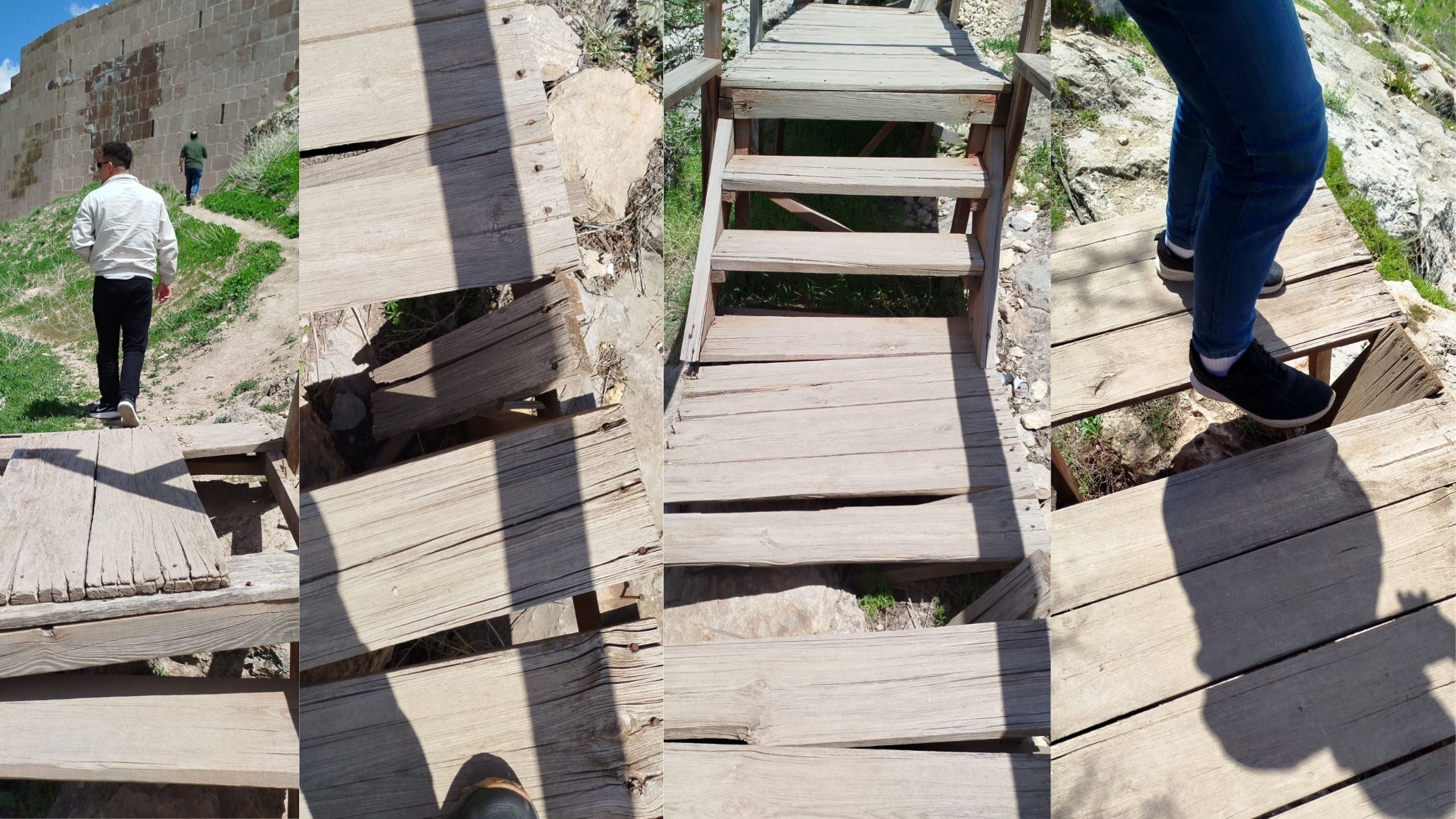 Çevre kirliliğinin yanı sıra kaleye ulaşımı sağlayan tahta köprülerde de ciddi sorunlar bulunuyor. Zamanla aşınan ve bazı yerleri tamamen kırılan köprüler, güvenli geçişi zorlaştırıyor. Mevcut haliyle köprüler üzerinde yürümek, özellikle çocuklar, yaşlılar ve turistler için ciddi bir risk oluşturuyor. Tahta parçalarının yerinden çıkmış olması ve köprülerin destek noktalarının zayıflamış görünmesi, her an bir kazaya davetiye çıkarabilecek durumda.