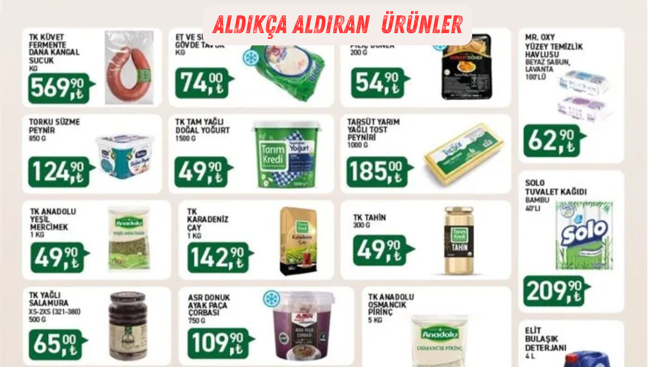 Çay, toz deterjan, kağıt havlu, sucuk, piliç döner, yüzey temizleme havlusu, süt ve süt ürünleri bu haftanın öne çıkan ürünleri arasında yer alıyor.