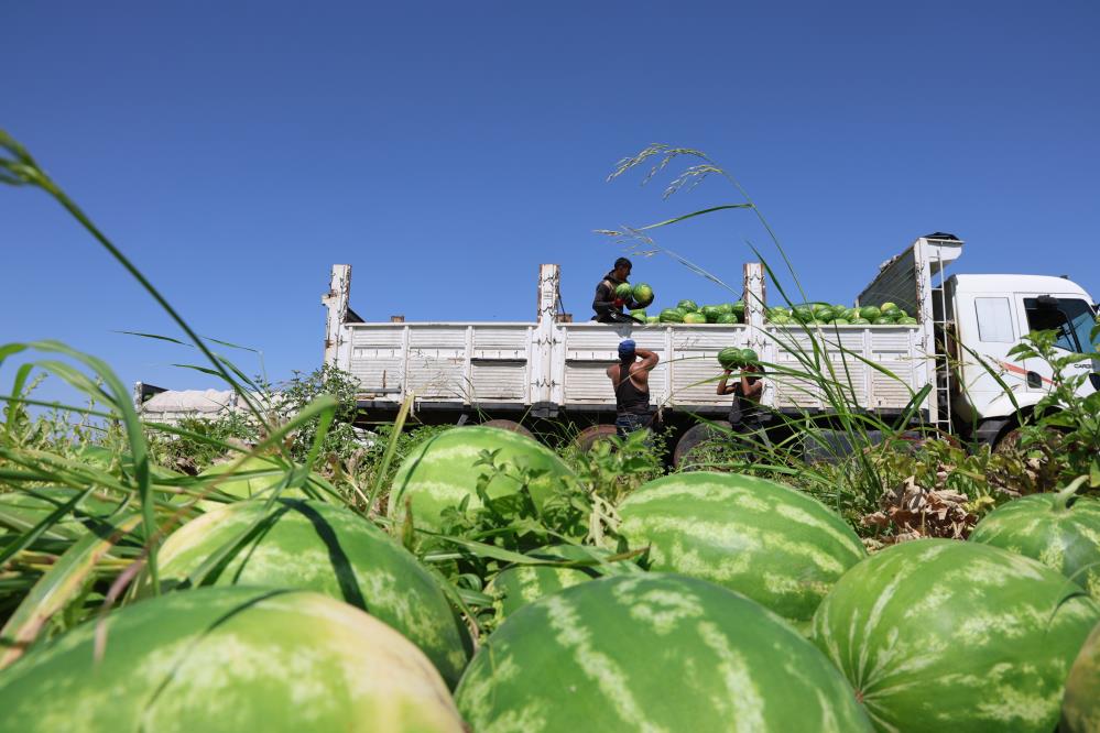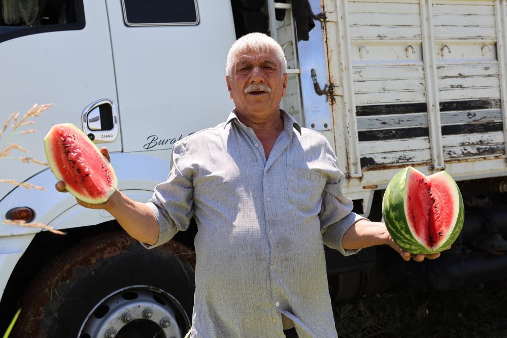 Karpuz üreticisi Ercan Tunç, 400 dönüm karpuz, 100 dönüm de kavun ektiklerini belirterek, hasada başladıklarını söyledi. Karpuzun şu anda tarlada kilosunun 1-2 TL arası olduğunu ifade eden Tunç, Iğdır, Van, Adana, Mersin, Gaziantep, Şanlıurfa'daki marketlere gönderdiklerini kaydetti. Tunç, hem tedarik yaptıklarını hem de mallarını gönderdiklerini söyleyerek, "Bu sene hava şartları da rüzgar ve poyraz karpuza büyük zarar verdi. Hasada 3 gün kalmış diyorsun, geliyorsun hasada gelmiş. Sıcak rüzgar malları bir araya getirdiği için haliyle herkes malını satmaya çalışıyor. O bu kadar diyor, başkası bu kadar deyince haliyle fiyat kendi kendine düşüyor. Sıcaklar birden bastırınca böyle oluyor. Don olayları vardı" dedi.