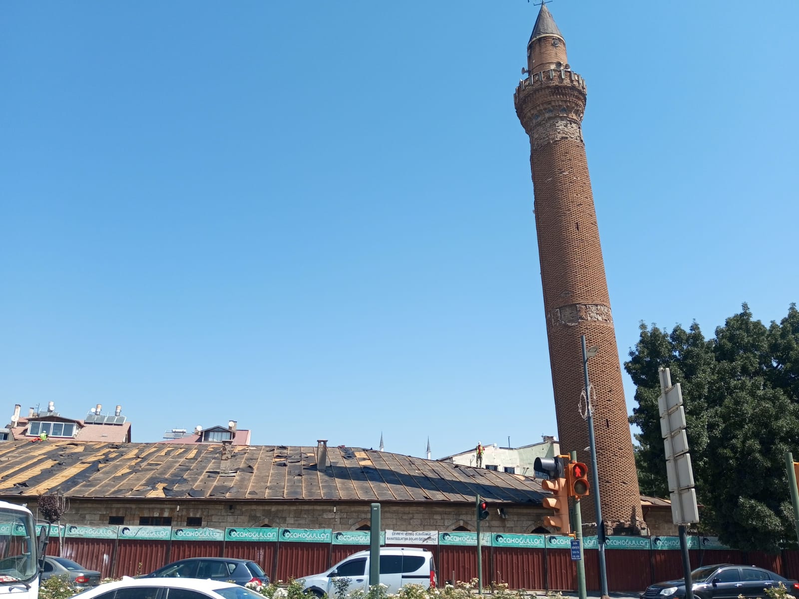 Sivas'ın en önemli tarihi ve manevi miraslarından biri olan, eğik minaresiyle bilinen 8 asırlık Ulu Cami'de başlayan kapsamlı restorasyon çalışmaları devam ediyor. Etrafı koruyucu saclarla kapatılan tarihi caminin çatı kısmının da söküldüğü görülürken, bu durum projenin yapıyı temelinden en üstüne kadar bütüncül bir yenileme sürecine aldığını gözler önüne seriyor.