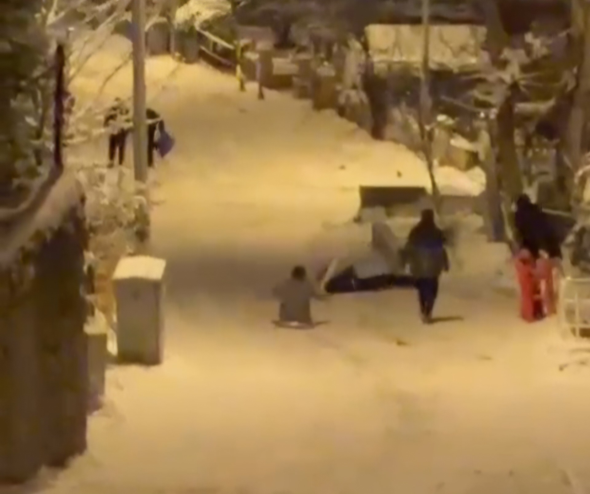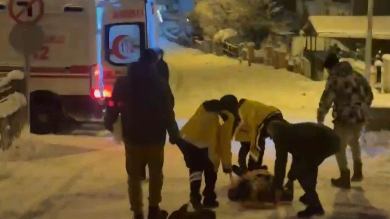Bartın'da şiddetli kar yağışı nedeniyle Demirciler Mahallesi Kürtyaması Sokak'ta tepsi ile kayan Ş.S., duvara çarptı.