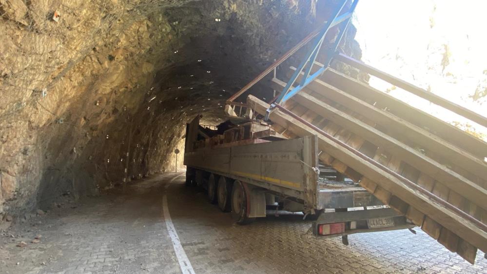 Erzincan'ın Kemaliye ilçesindeki tarihi Taş Yolu'nda tırın tünele sıkışması sonucu ulaşım sağlanamıyor.