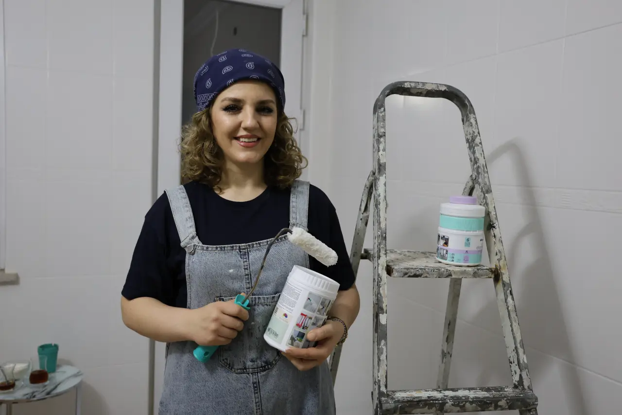 Sivas’ta yaşayan 42 yaşındaki 3 çocuk annesi Handan Gökçek, 5 yıl önce mutfak duvarlarının boyaya ihtiyaç duyması üzerine kolları sıvadı. Önce mutfağını ardından evinin diğer bölümlerini boyayan Gökçek, zamanla bu alanda tecrübe kazandı. Boyanın kendisi için bir tutkuya dönüştüğünü belirten Gökçek, “Kendi evimi boyayarak başladım, boya bende bir tutku haline geldi. Sonrasında evini boyatmak isteyenler oldu, onları boyaya boyaya bunu bir meslek haline getirdim” ifadelerini kullandı.