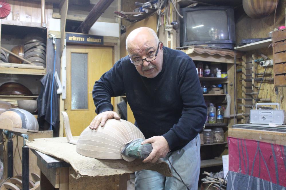 Küçük yaşta başladığı ud yapımını 42 yıldır aralıksız sürdüren 66 yaşındaki Mustafa Karaoğlu, “Ben burada ud yapıyorum, keman tamir ediyorum. Çok küçük yaşta başladım. Babam marangozdu. Orada bazılarını görüp esinlendim. Karayollarında çalışıyordum ama dükkânımı hiç kapatmadım. Emekli olduktan sonra da kendimi dükkânıma adadım. 42 yıldır ud yapıyorum. Orglarda hazır ses çalsa da biz onları kullanmayız.