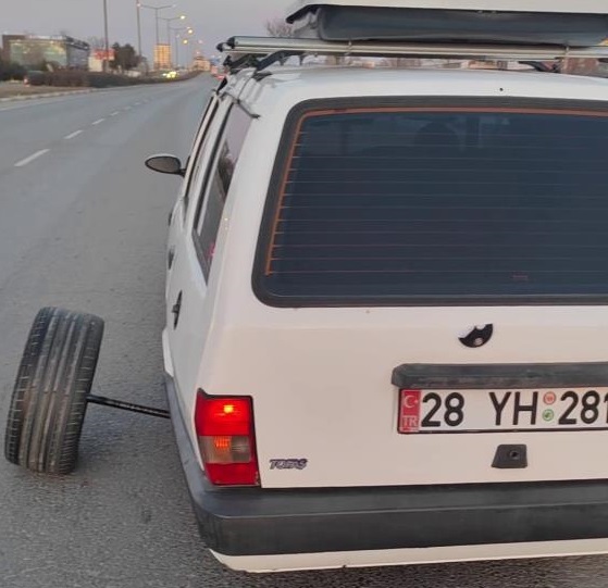 Arif Sancak, aynadan baktığında tekerin kopuk bir şekilde geldiğini gördüğünü ifade ederek, "O gün iftar saatinde ailemle ile beraber bir davete gidiyordum ve daha sonrasında ışıklarda durdum. Tekrar hareket haline geçince araçta bir boşluk hissettim. Dikiz aynasından baktığımda tekerin kopmuş bir şeklide benimle beraber geldiğini gördüm. Aracı hemen durdurarak o anları telefonum ile kayıt altına aldım. Aracın aks kısmının çıktığını tespit ettim ve bana 4 bin lira civarında bir masrafı oldu. Böyle bir olay ilk defa başıma geliyor. Tofaş marka aracalar da bu durumu yaşayanlar oluyor. O anda hızlı olmadığım için bir kazaya karışmadım" dedi.