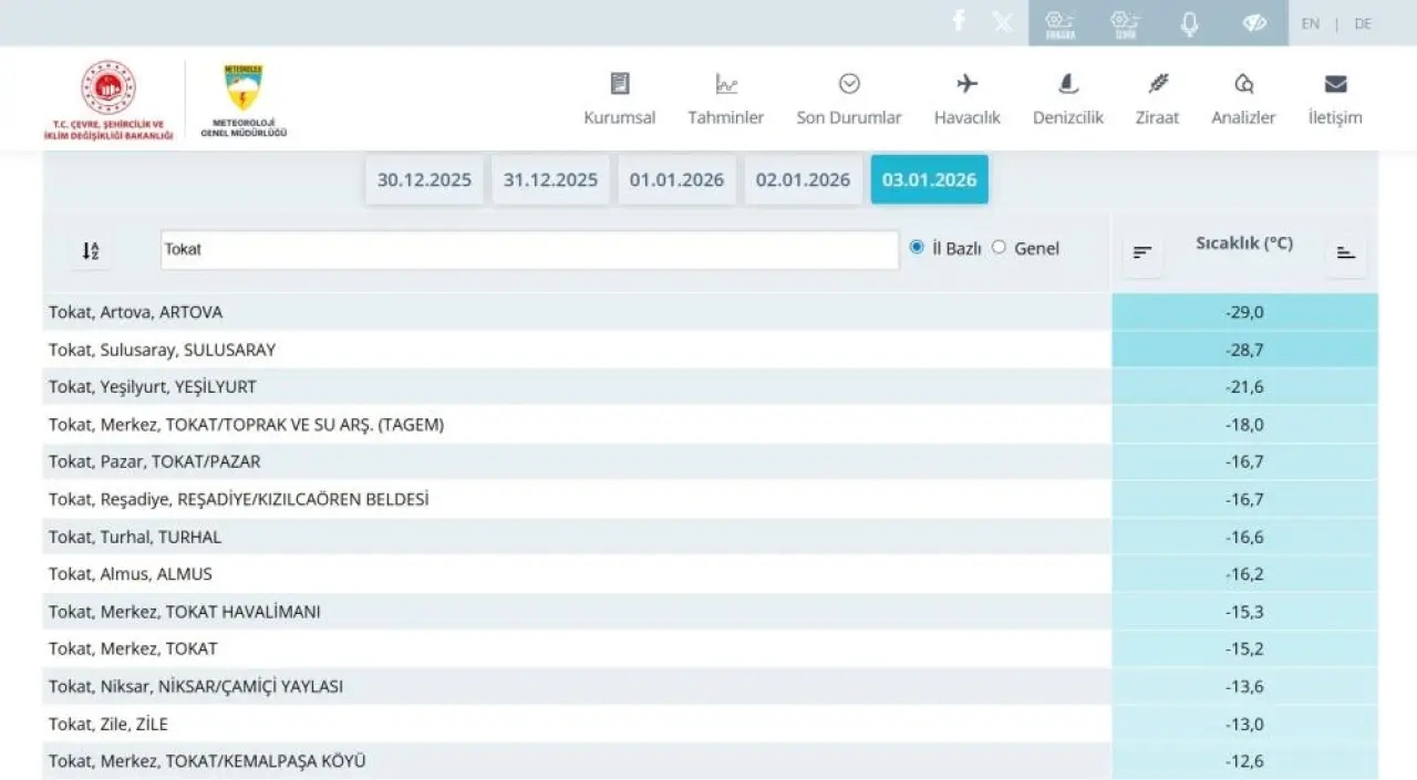 Yaşanan bu tarihi dondurucu soğukların ardından yetkililer alarm durumuna geçti. Meteoroloji verilerinin ardından valilik ve belediye ekipleri, vatandaşları özellikle gece ve sabahın ilk saatlerinde oluşabilecek gizli buzlanma ve don olaylarına karşı uyardı. Zirai don riskinin de en üst seviyede olduğu belirtilirken, ulaşımda yaşanabilecek aksamalar için önlemler artırıldı. Tokat, son bir asrın en sert kış sınavını verirken, dondurucu ayazın etkisini birkaç gün daha sürdürmesi bekleniyor.