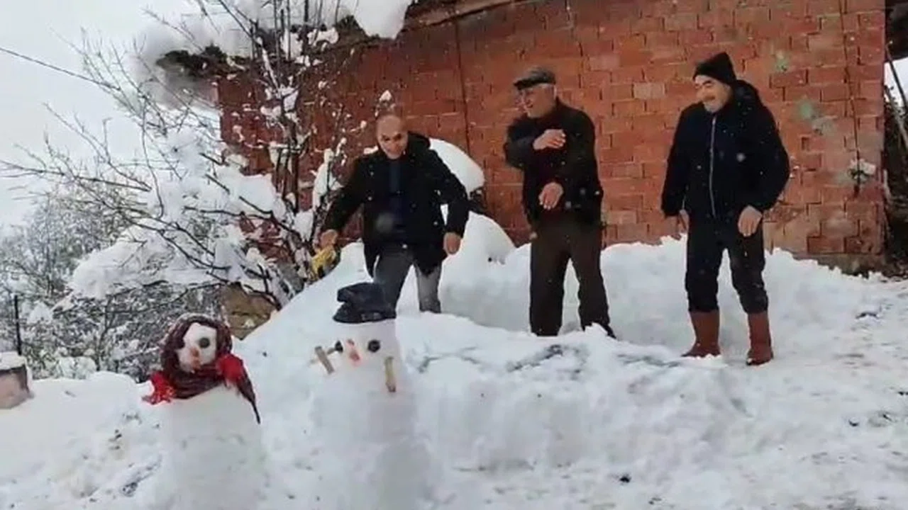 Tokat'ın Reşadiye ilçesinde vatandaşlar, uzun zamandır bekledikleri kar yağışını kardan adam yapıp halay çekerek kutladı.