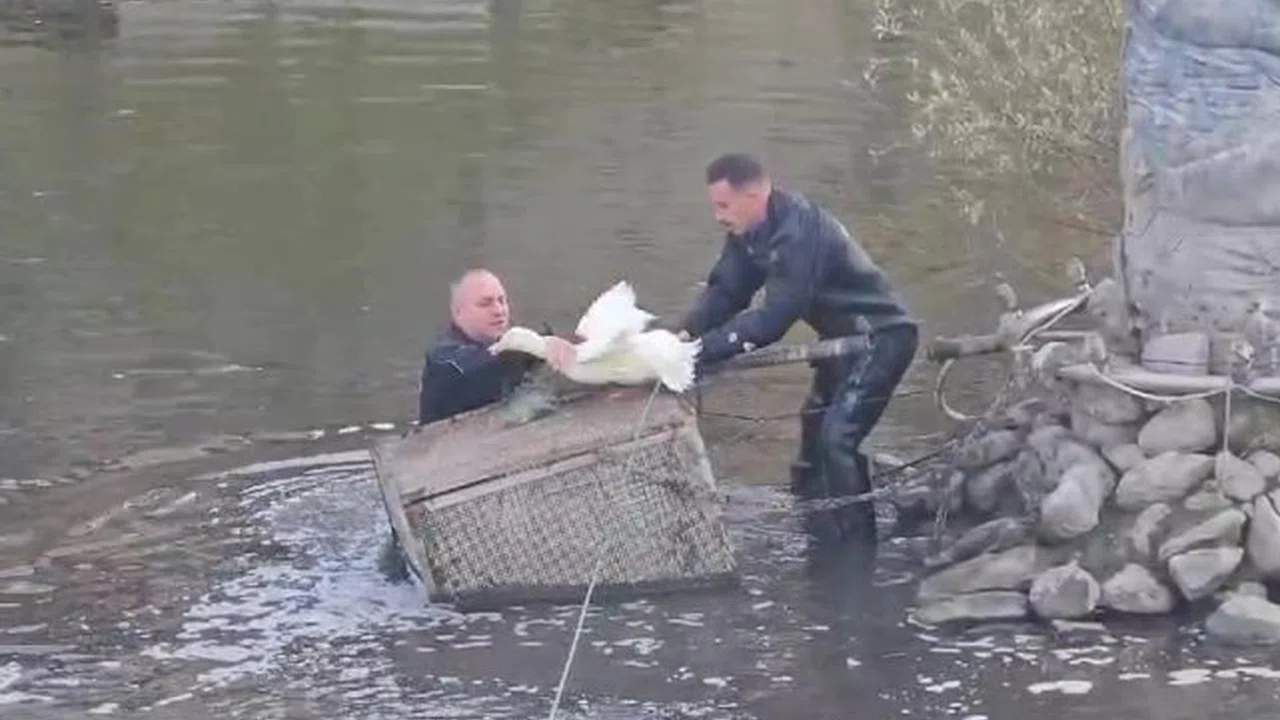 Edinilen bilgiye göre, Tokat'ın Turhal ilçesinde bir ördeğin nehir sularının içinde çırpındığını gören vatandaşlar durumu itfaiyeye bildirdi. Suyun derin olması nedeniyle ördeğe erişilemeyince su altı kurtarma ekibi olan Amasya Belediyesi İtfaiye Müdürlüğü'nden yardım talebinde bulunuldu. Turhal'a gidip halat merdivenle nehre inen ekipler, boynuna ağ takılmış haldeki yaralı ördeği kurtardı. İpe bağlanıp kıyıya çıkarılan ördek, tedavisi için veterinere götürüldü.