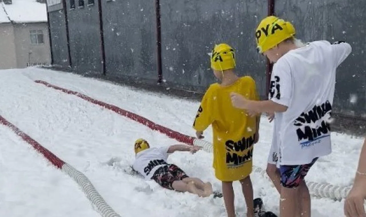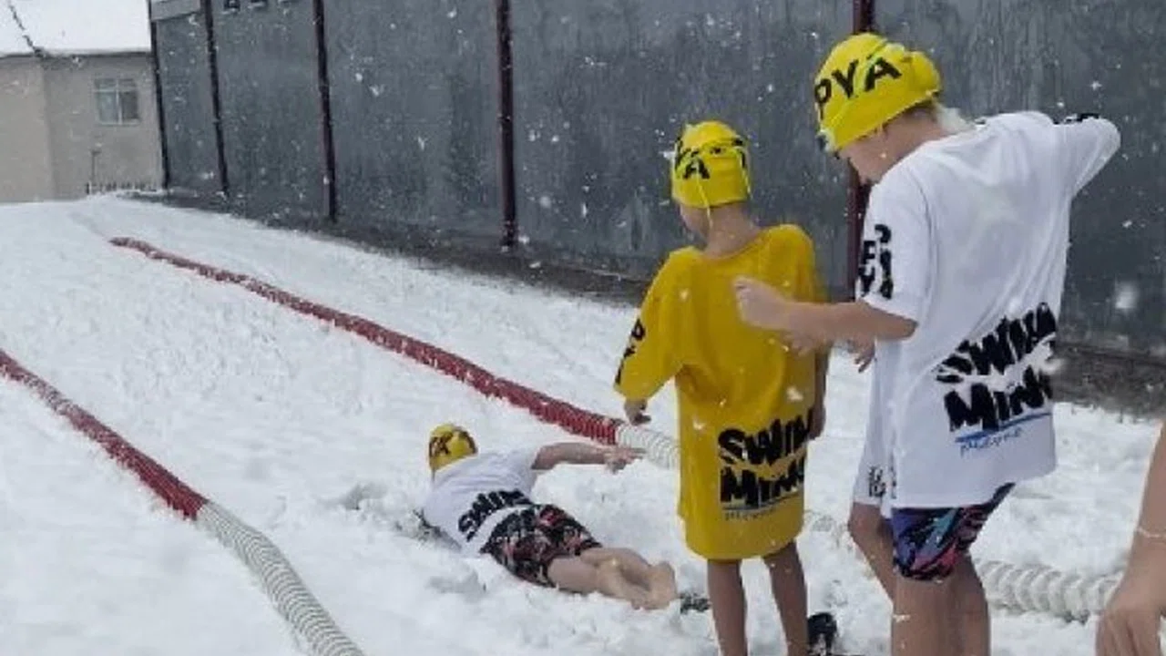 Tokat'ta etkili olan yoğun kar yağışı, renkli görüntülere sahne oldu. Olimpik yüzme havuzunun eksikliğine dikkat çekmek isteyen yüzme antrenörleri, ilginç bir farkındalık etkinliği düzenledi. Antrenör Samet Uluhan ve 15 öğrencisi, karda mayo ve şortlarını giyerek yüzme taklidi yaptı. Eğlenceli anları cep telefonuyla kaydeden Alper Kıvrak, etkinliği izleyenlerin yüzlerini güldürdü. Kentte olimpik yüzme havuzu için yapılan bu ilgi çekici farkındalık çalışması, karın eğlencesini yüzme tutkusuyla birleştirdi.