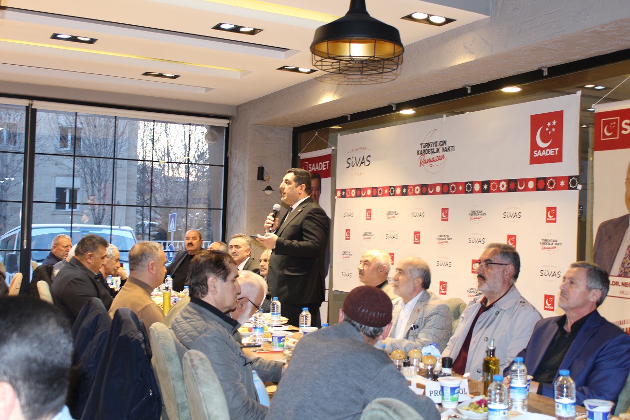 Sivas Saadet Partisi İl Teşkilatı tarafından iftar programı düzenlendi. İftar öncesi konuşma yapan Saadet Partisi Sivas İl Başkanı Mehmet Zahit Tokgöz, hem Ramazan ayının manevi anlamına değindi hem de partinin toplumsal kalkınma ve adalet hedeflerini vurguladı.