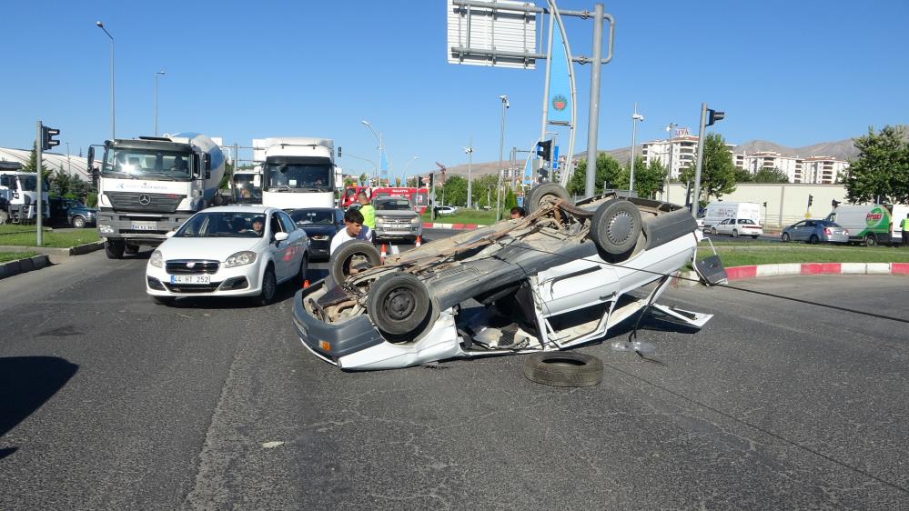 Malatya'da iki aracın çarpıştığı kazada 3 kişi yaralanırken, ters dönen araçlardan biri kent trafiğini felç etti.