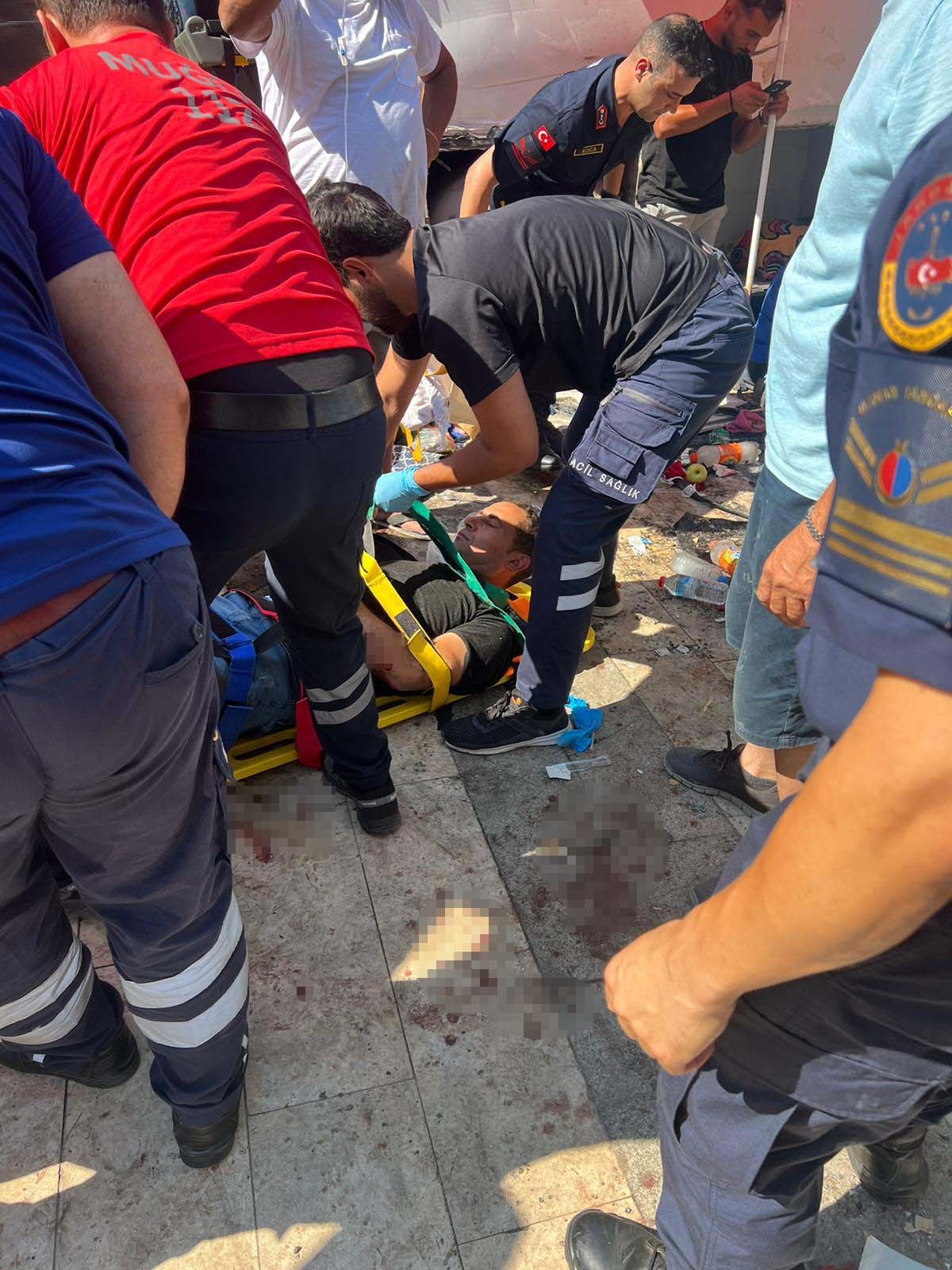 Kazazedelerin bölgeye sevk edilen ambulanslarla başta Muğla Eğitim Araştırma Hastanesi olmak üzere çeşitli sağlık kuruluşlarına sevki sürüyor.