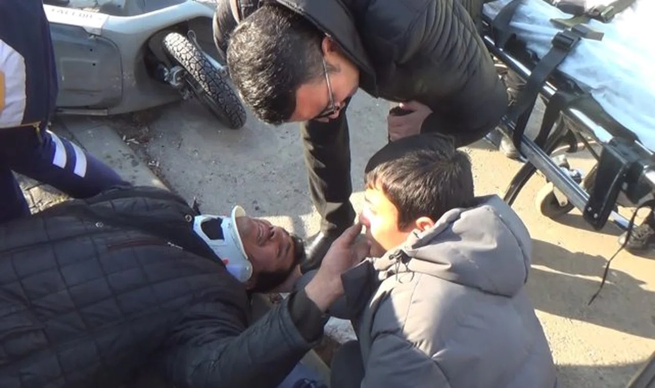 Kayseri'de tramvay ile çarpışan mobilette yaralanan sürücü arkadaki oğlunu 'yürüyebiliyor musun oğlum' diyerek teselli etti.