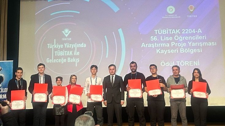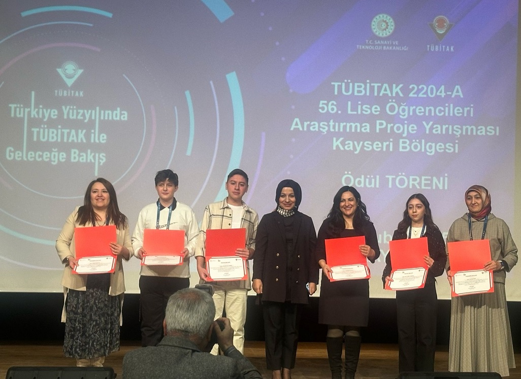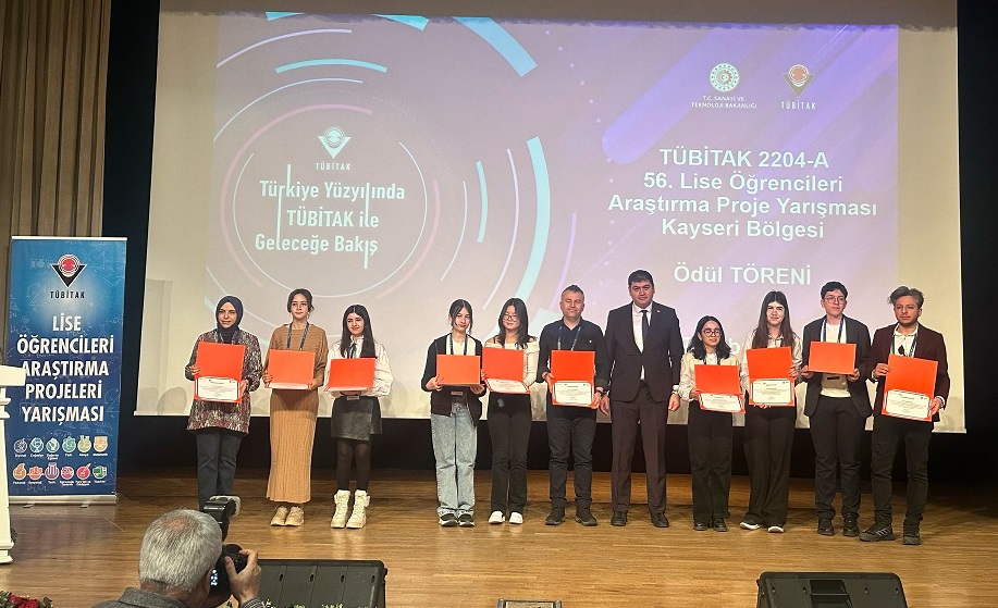 TÜBİTAK 2204-A Lise Öğrencileri Araştırma Projeleri Kayseri bölge finalinde Sivas rüzgârı esti. 100 projenin yarıştığı bölge finaline 35 proje ile katılma hakkı kazanarak dikkatleri üzerine çeken öğrencilerimiz, elde ettikleri 16 derece ile yarışmaya damga vurdu.