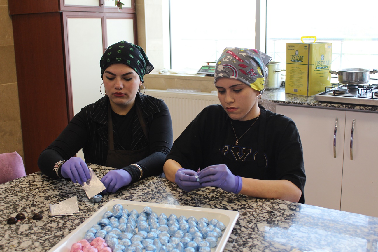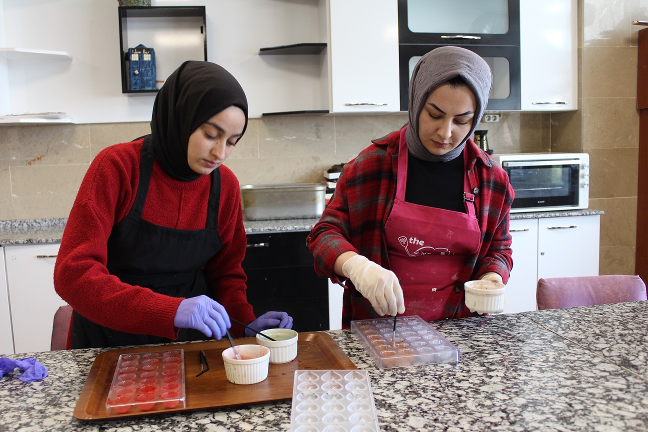 Bir diğer kursiyer Nazmiye Ustanoğlu ise, "Bayram için hijyenik koşullarda el emeğimizle çikolatalarımızı hazırlıyoruz.