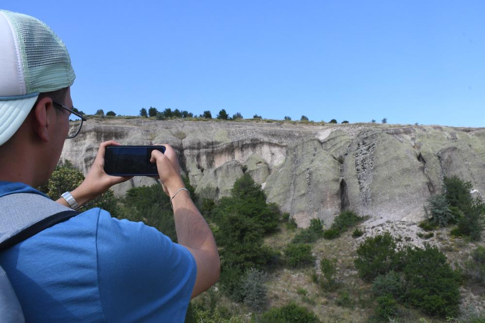 "Doğa yürüyüşü yaparken uzaktan fark ettim, yaklaştıkça yapının benzersizliğini daha iyi gördüm. Sanki peri bacalarını Yozgat’a taşımışlar gibi. Heyecan verici bir keşifti" ifadelerini kullandı.