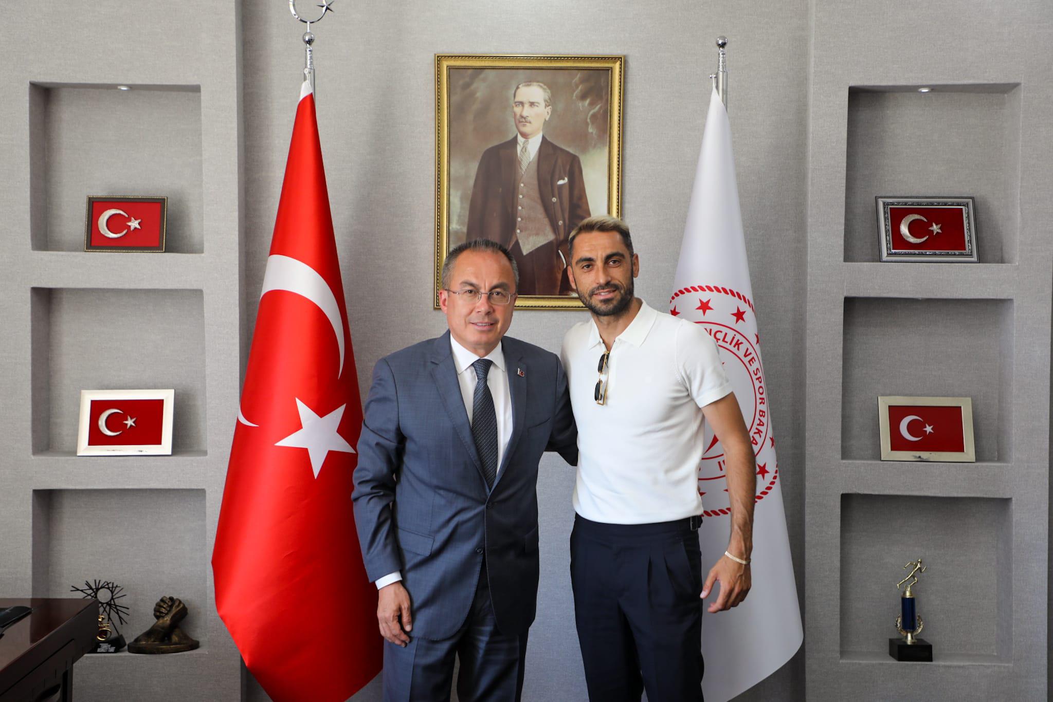 Sivasspor’un tecrübeli oyuncusu ve takım kaptanı Uğur Çiftçi ile Sivas İdmanyurdu Spor Kulübü Başkanı Murat Küçükyazıcı, Gençlik ve Spor İl Müdürü Şahin Ertem’i makamında ziyaret etti. Sivas futbolunun iki önemli ismini ağırlayan Ertem, konuklarıyla sporun kentteki gelişimi üzerine samimi bir sohbet gerçekleştirdi.