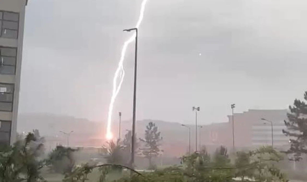 Sivas"ta Cumhuriyet Üniversitesi kampüsüne yıldırım düştü, o anlar cep telefonuyla görüntülendi.