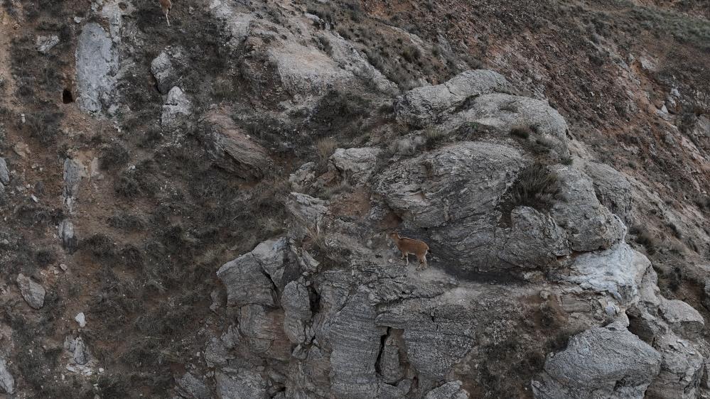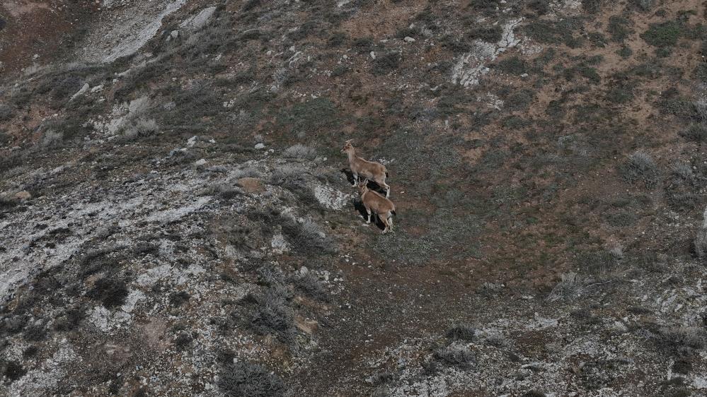 Doğada nadir görülen dağ keçileri, Sivas’ta şehir merkezine kadar indi. Dağ keçilerinin kayalık alanda dron kamerasına yansıyan görüntüleri, belgeselleri aratmadı.