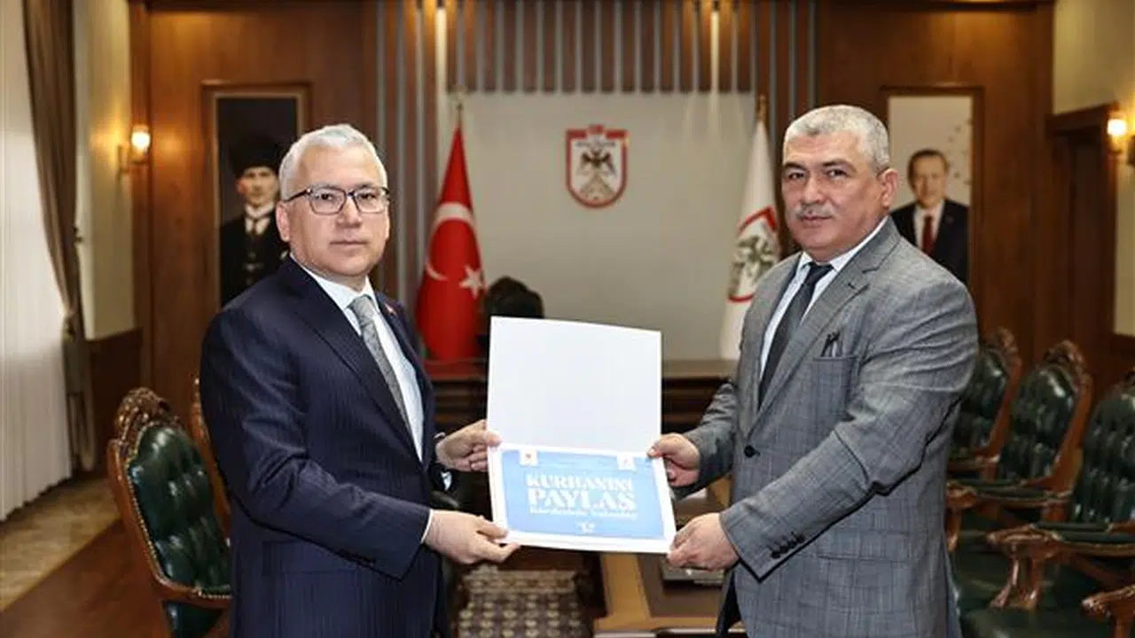 Türkiye Diyanet Vakfı adına Vali Şimşek’in kurban vekaletini kabul eden İl Müftüsü Altunkaya, teşekkür ederek bağış makbuzunu takdim etti.