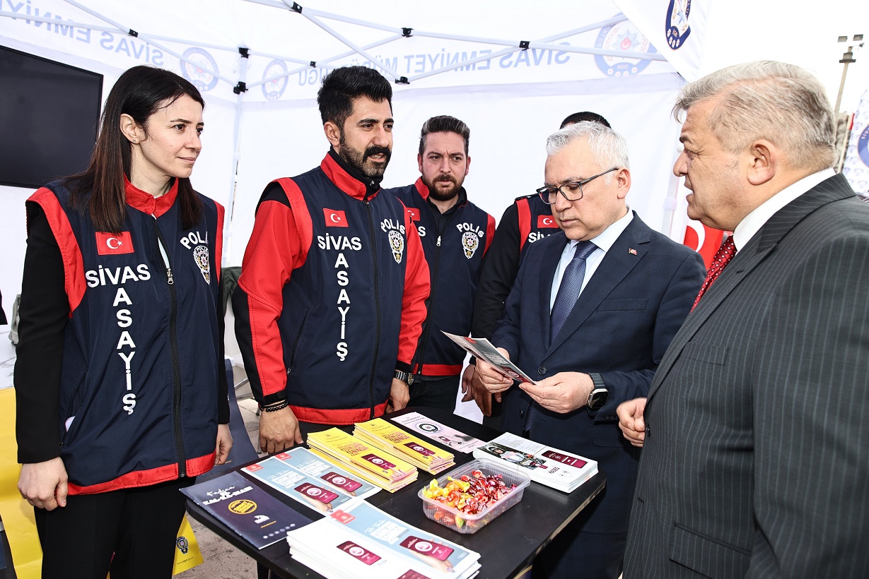 Sivas İl Emniyet Müdürlüğü tarafından Atatürk Kongre Müzesi Yanı Etkinlik Alanı’nda açılan tanıtım stantlarını gezen Vali Şimşek, İl Emniyet Müdürü Burhan Akçay’dan etkinliklerle ilgili bilgi aldı.