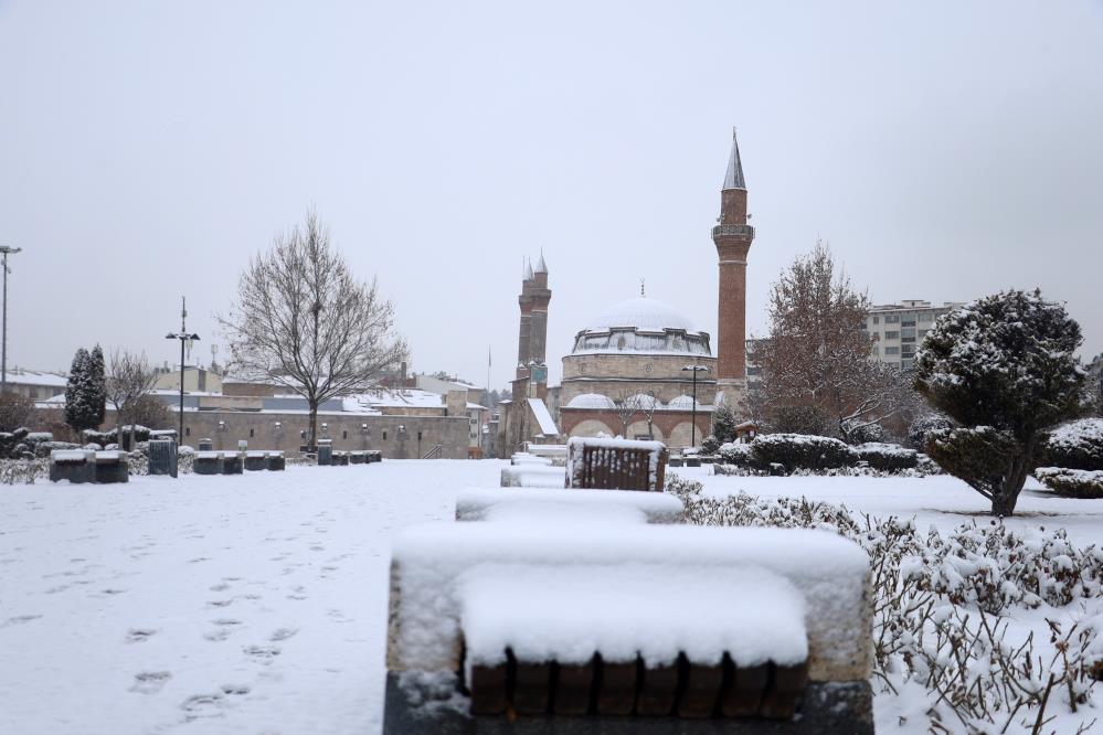 Sivas'ta dün akşam saatlerinde başlayan kar yağışı, sabah saatlerinde etkisini artırarak tarihi kent meydanını beyaza bürüdü. Kar yağışının ardından tarihi meydanda kartpostallık görüntüler oluştu.