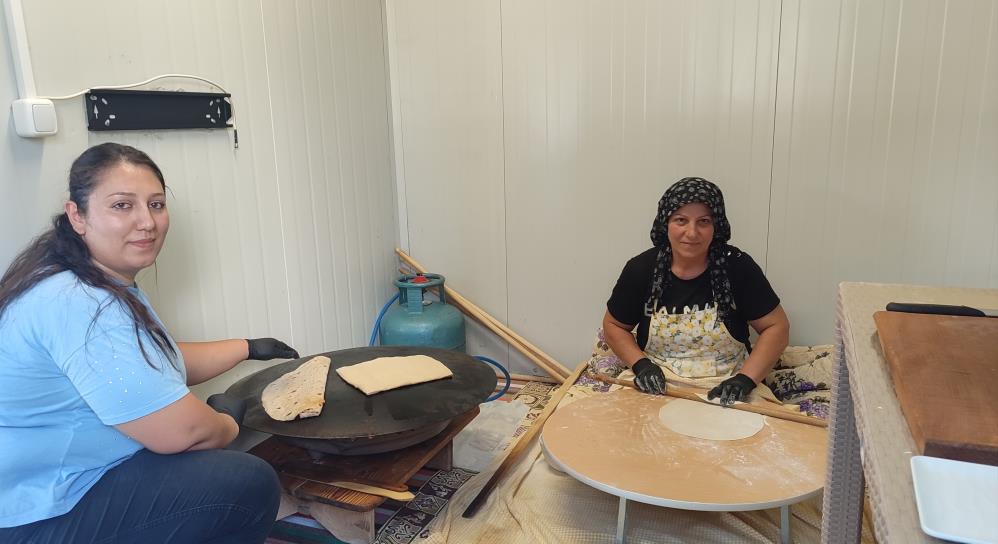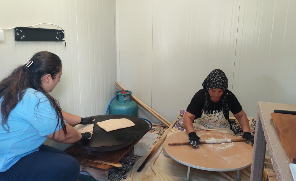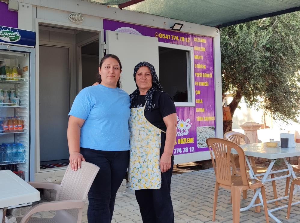 Onikişubat İlçesi Tekerekyolu üzerinde, mütevazı bir konteyner iş yeri... Sabahın erken saatlerinde bu küçük dükkandan mis gibi hamur kokuları yükseliyor. 4 çocuk annesi Fatma Özdemir ve 2 çocuk annesi kızı Tuğba Altınköprü, her gün saat 07.30'da tezgahlarının başına geçiyor. Biri hamuru yoğuruyor, diğeri iç malzemeyi hazırlıyor ve sonra omuz omuza verip lezzetli gözlemeleri, sıcacık bazlamaları müşterileriyle buluşturuyorlar.