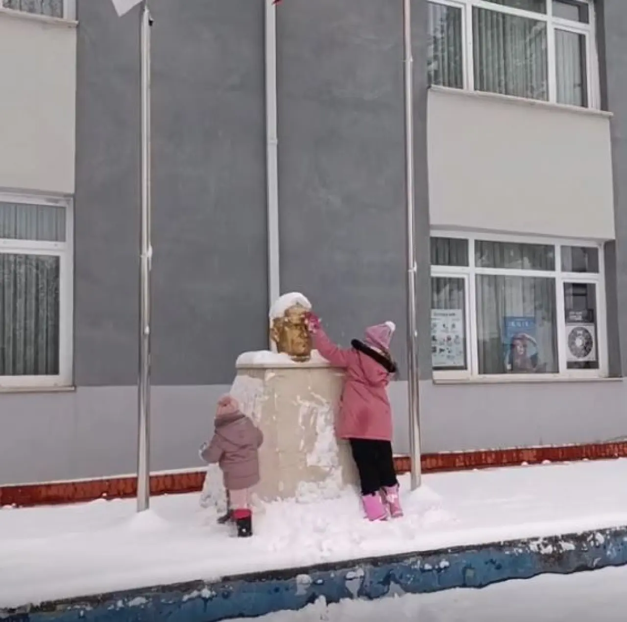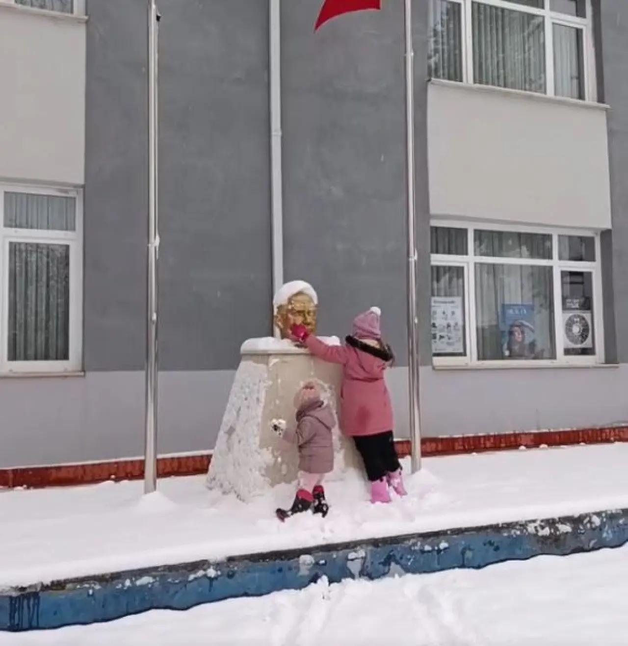 Okul bahçesindeki Mustafa Kemal Atatürk büstünün yoğun kar yağışı nedeniyle tamamen beyaza büründüğünü ve adeta görünmez hale geldiğini fark eden iki kardeş, oyunu bir kenara bıraktı. Hiç kimseden talimat almadan, tamamen içgüdüsel bir şekilde büstün yanına giden Zeynep ve Nisa, minik elleriyle üzerindeki kar kütlelerini temizlemeye başladı. Dondurucu soğuğa aldırış etmeden büstün üzerindeki her bir kar tanesini süpüren kardeşlerin bu hassasiyeti, çevredeki vatandaşların da takdirini kazandı.