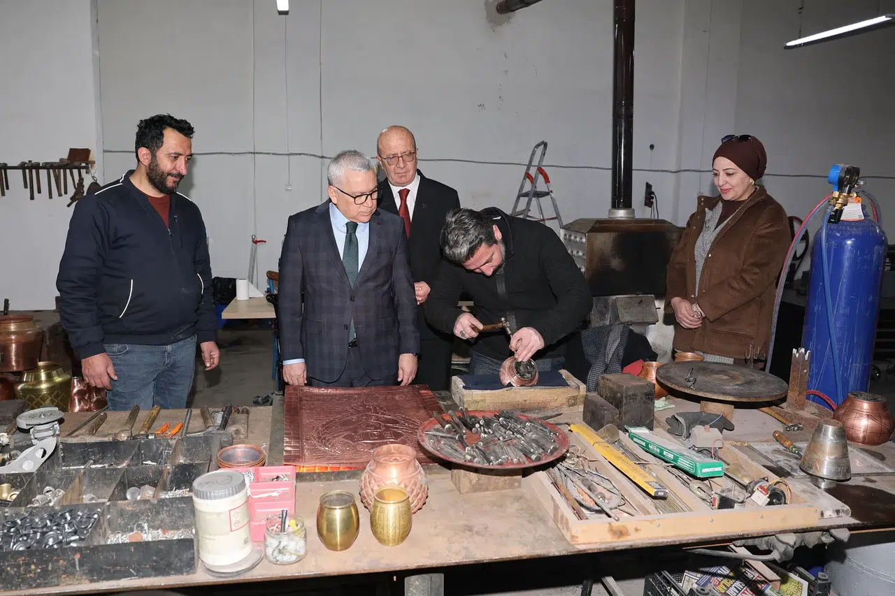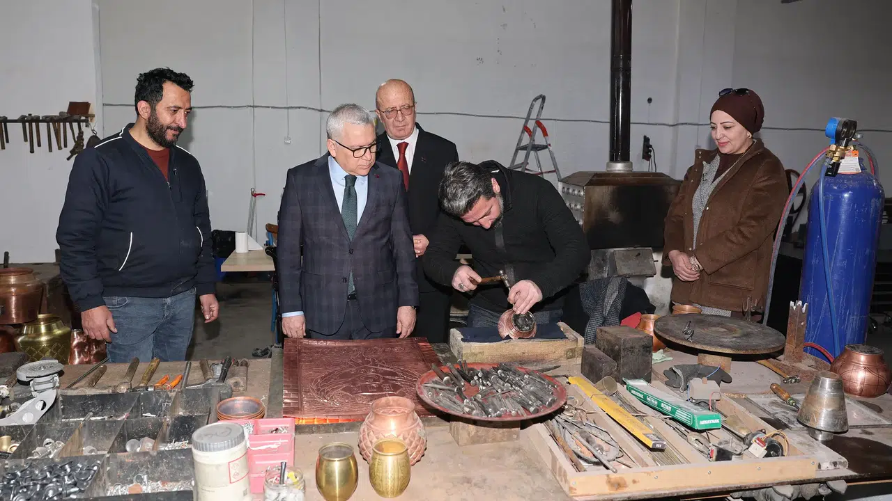 Ziyaretin en dikkat çekici bölümü ise geleneksel sanatın modern endüstriyle buluştuğu noktada yaşandı. Vali Şimşek, büyük bir titizlikle üretilen bakır kapların ve profesyonel mutfak gereçlerinin yapım aşamalarını tek tek inceledi. Firma sahipleri, ürünlerin el emeğiyle şekillenen zorlu yolculuğu hakkında Vali Şimşek’e detaylı sunumlar yaparak, üretim teknikleri konusundaki incelikleri paylaştı.
