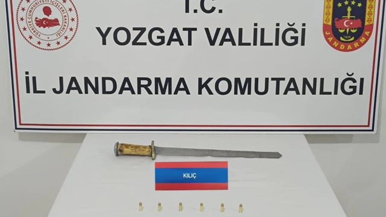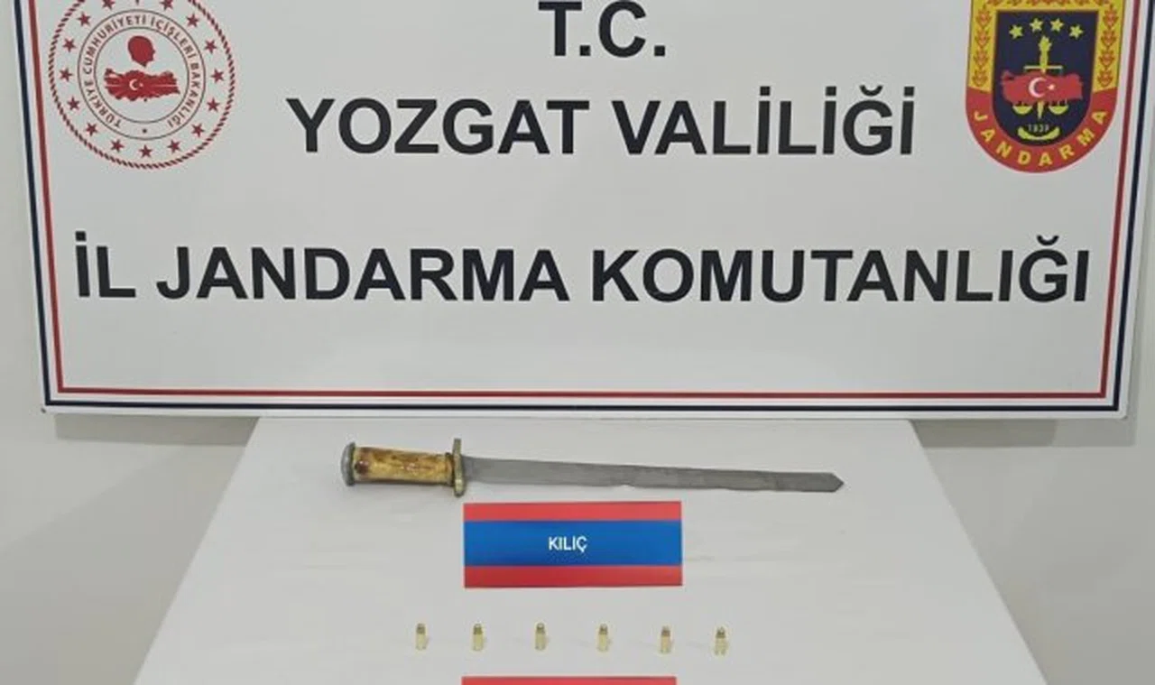 Yozgat'ın Yerköy ilçesinde Jandarma ekiplerinin şüphelenerek durdurduğu araçtan fişek ve kılıç çıktı.